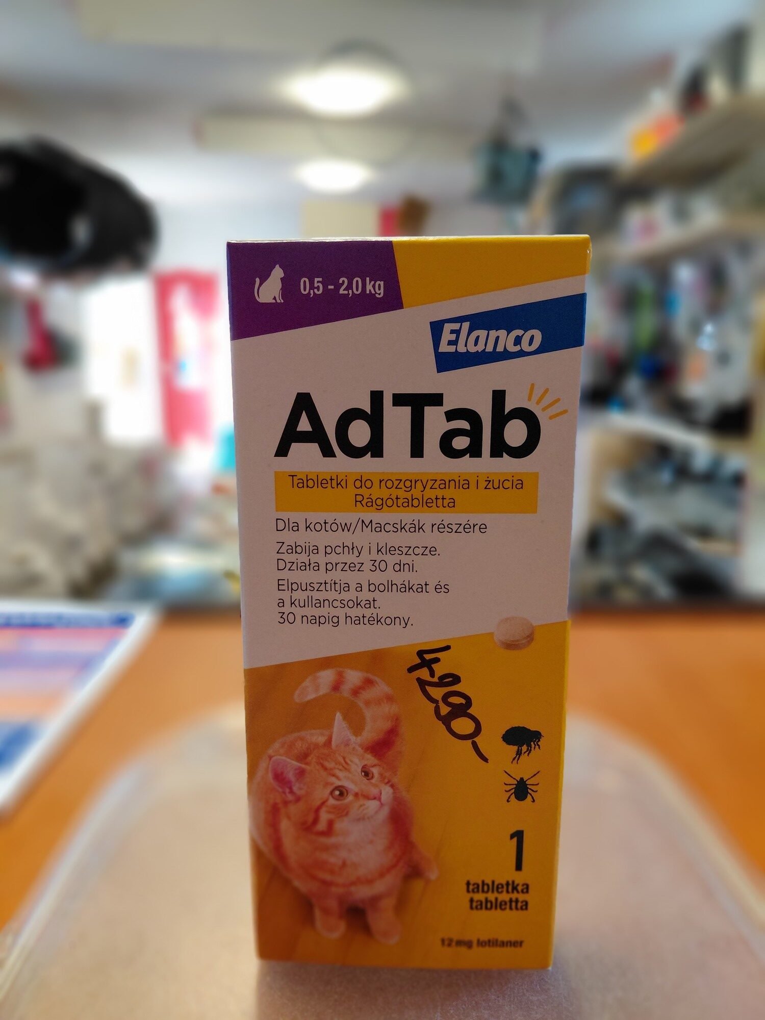 A helyes adagolás biztosítása érdekében a testtömeget a lehető legpontosabban kell meghatározni. A AdTab a kutyák számára kellemesen ízesített rágótabletta. A rágótablettá(ka)t havonta egy alkalommal etetéskor vagy etetés után kell alkalmazni.
